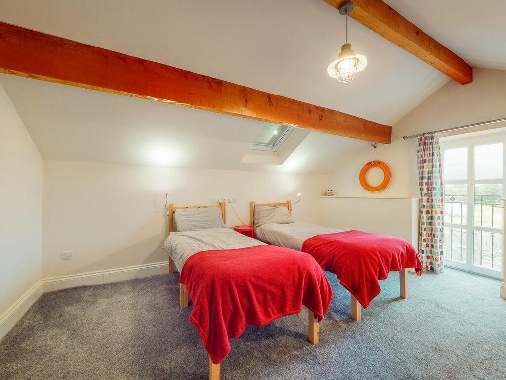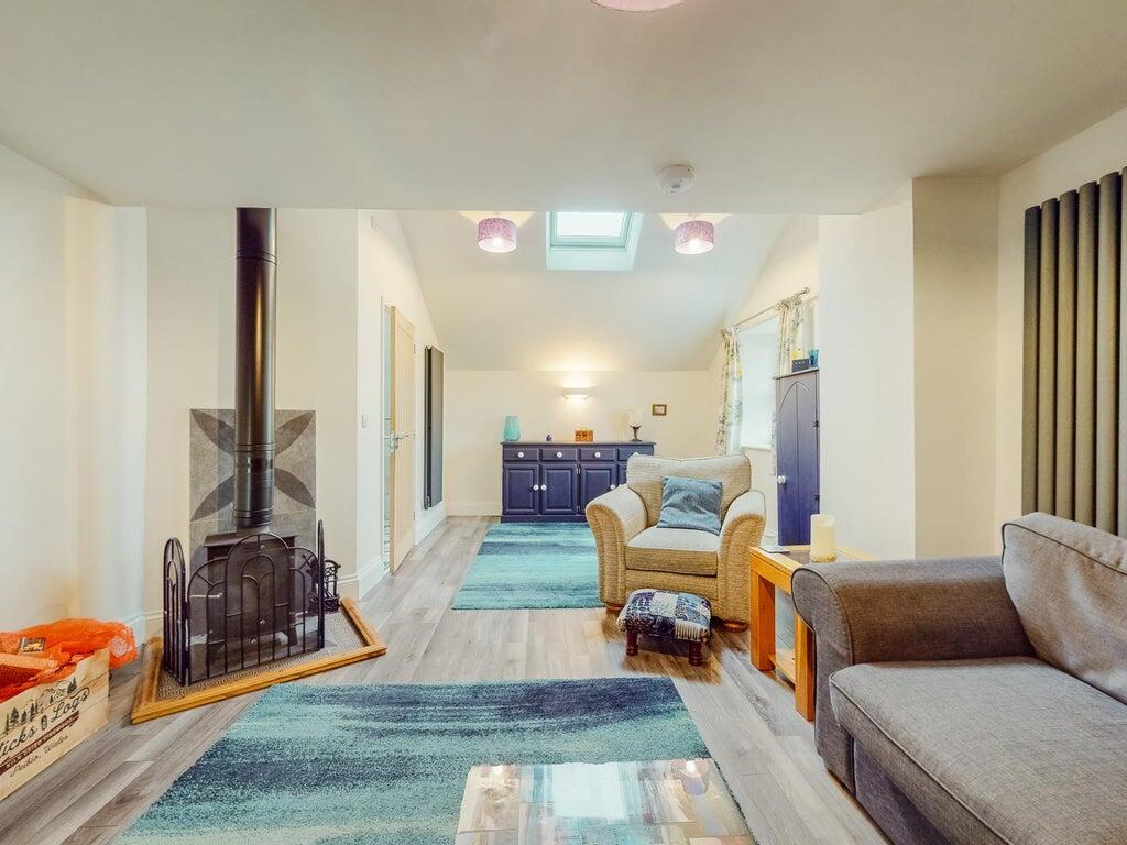 The ground floor offers a large kitchen/dining room, plus a generous living room. A cloakroom with WC, basin, and shower is also located downstairs. Outdoors, double doors lead to a private garden with seating for six, hammock, fire pit, charcoal BBQ, gas fired pizza oven, and an exclusive use hot tub. These strong lifestyle amenities significantly boost leisure let attractiveness.