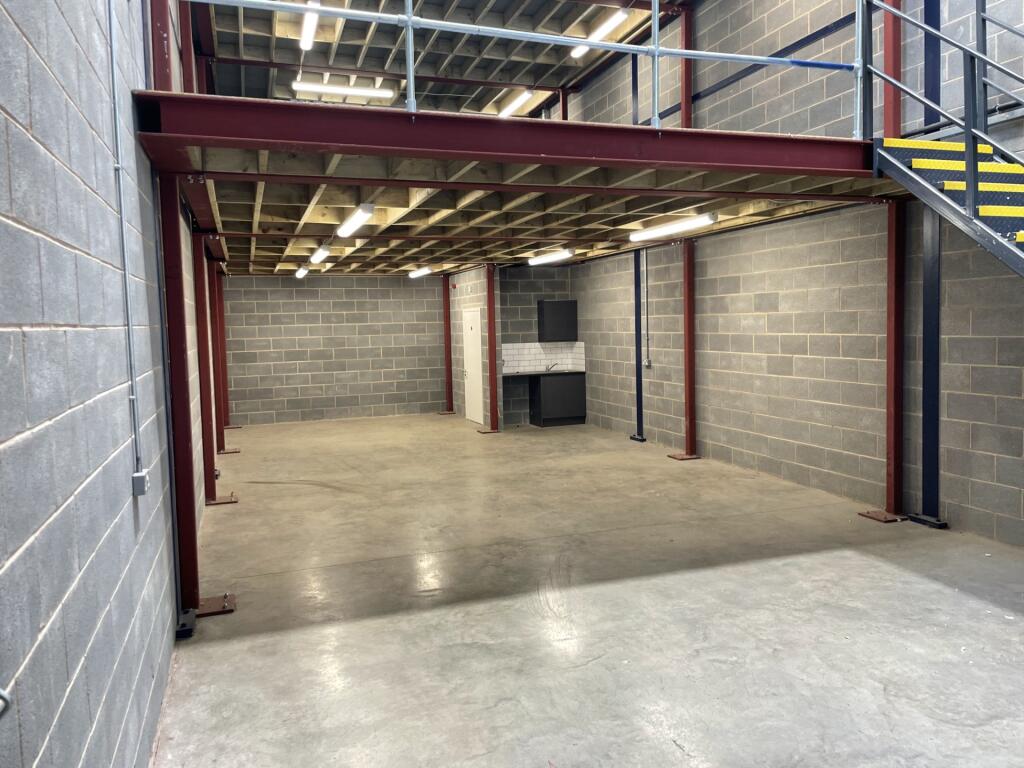Unit C10 consists of a combined space of total 980 sq.ft including both the ground floor warehouse space and the mezzanine space with lots of ceiling height beneath it. The unit has a large shutter door and loading area as well as parking on the front of the property. Other benefits include 3 Phase Power, CCTV and a kitchenette, sink and WC on site.