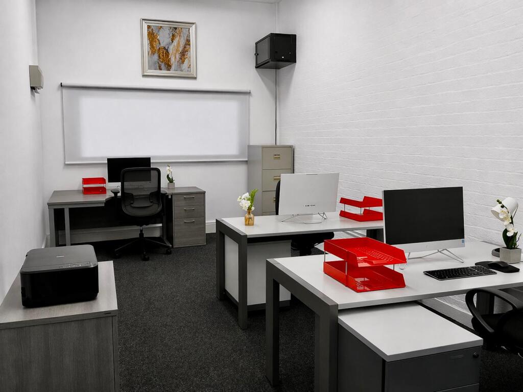 Finished to a high standard, the space features modern furnishings, neutral décor, and excellent natural light, creating a clean and productive atmosphere. The office also includes ample storage, stylish desks, and ergonomic seating, ready for immediate occupation.