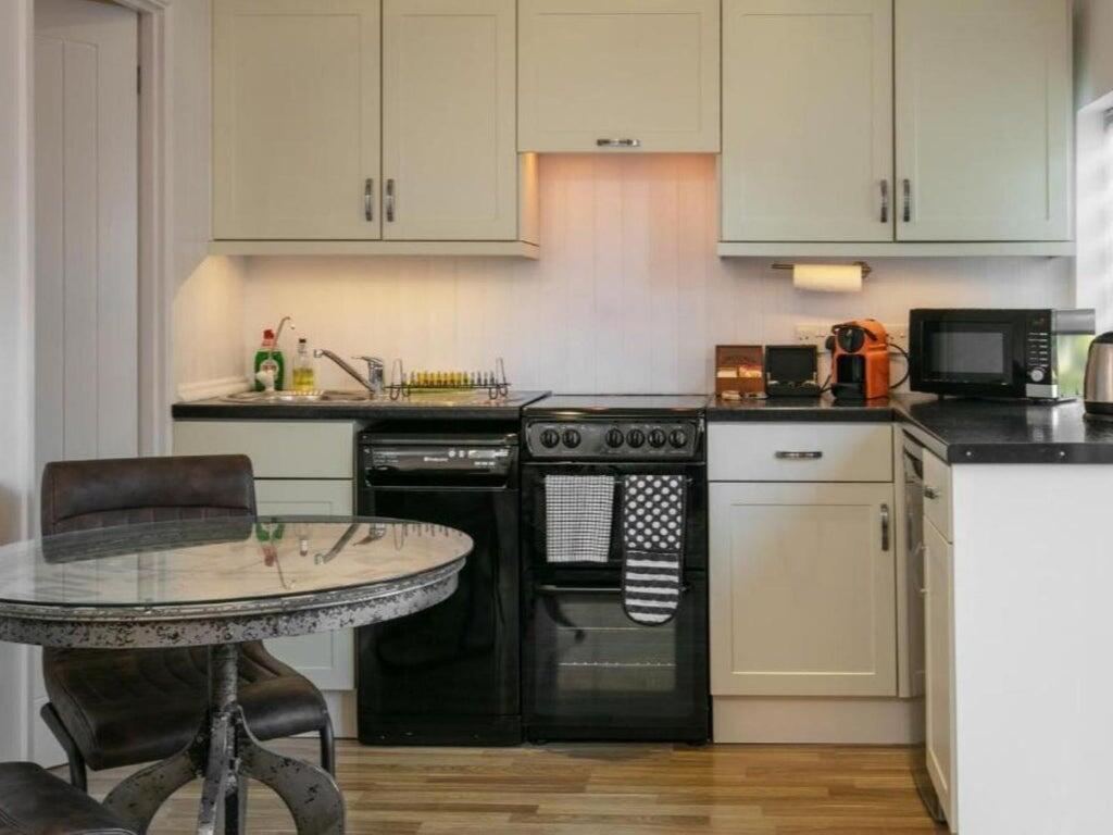 The Garden House is a self-contained building with a kitchenette and lounge/dining room on the ground floor, and a double bedroom (with a zip and link bed) with a walk-in shower on the first floor.