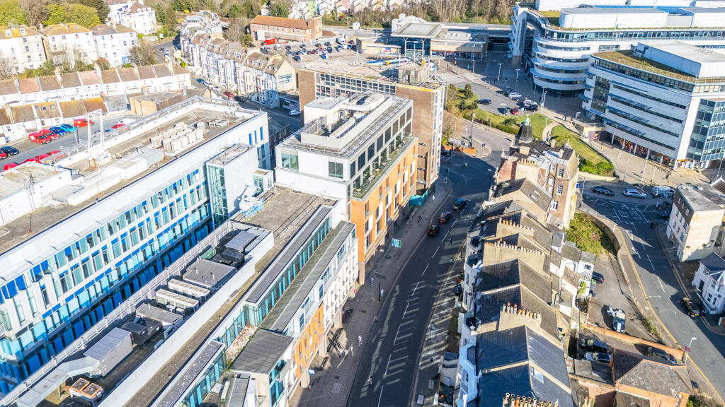 Hastings is a well-established coastal town in East Sussex, approximately 70 miles south-east of London, benefiting from good road communications via the A21 to the M25 and the A259 coastal route linking to Brighton and Ashford. The property is situated within the Priory Quarter, the town’s principal business district, directly opposite Hastings railway station and close to Priory Meadow Shopping Centre. The location also benefits from a strong educational presence, being close to further and higher education facilities including Sussex Coast College and university campuses.
