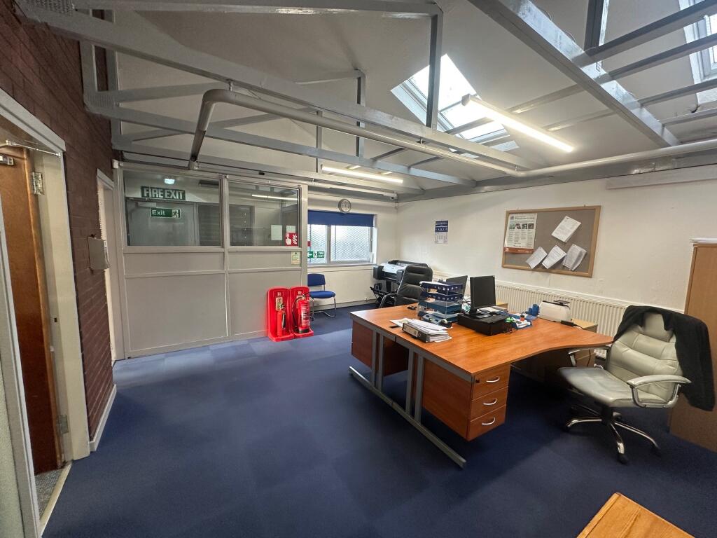 A terrace of 3 workshop units of steel frame construction, blockwork walls and clad externally in profile sheeting. The eaves height is 5m lowering 3.5m t the rear. Access is via roller shutter with separate visitor access. The units access is a shared yard.