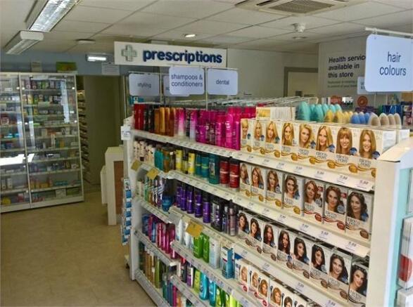 ceiling mounted strip light units. The north-east corner of the front shop has been subdivided to provide a consulting room. To the rear there is the dispensary, a preparation room fitted with base units and work tops along the east wall incorporating single drainer stainless steel sink and door through to stock room. Off the back of the dispensary there is