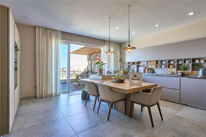 Penthouse within walking distance of the Marsaskala promenade. The layout features a nice sea view terrace with a swimming pool, spacious squarish open plan area, three double bedrooms, and two bathrooms (one en suite). Property is finished and furnished to very high standards. An optional two/ three car garage is available within the block.