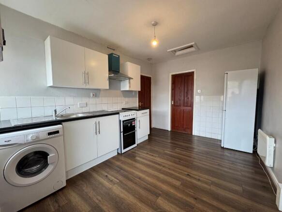 Kitchen with Freestanding Gas Cooker, Fridge Freezer & Washing Machine