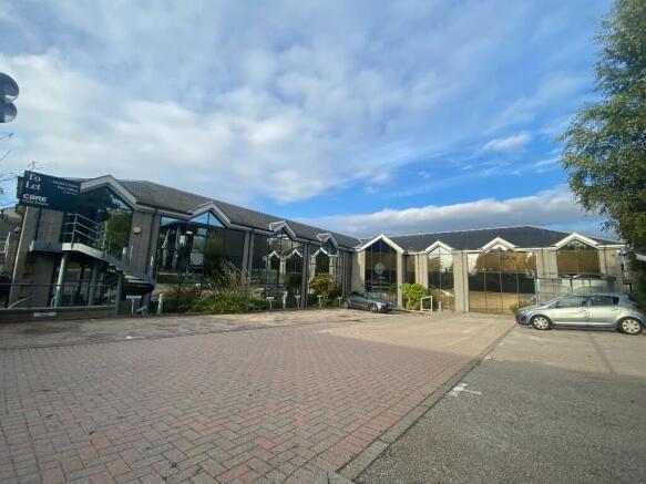 The subjects comprise a modern, two storey office building under a pitched and slate roof.