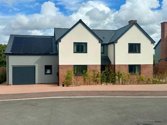 A substantial detached house overlooking fields and local countryside with 4 bedrooms, en-suite/walk-in wardrobe, triple glazing, solar panels, air source heat pump, utility, single garage and enclosed garden. 10 year structural warranty.