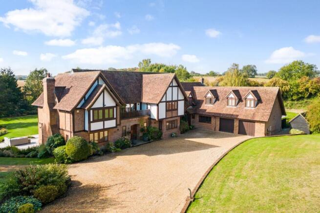 Orchard House is accessed via electric gates opening to a sweeping gravel driveway providing expansive parking for a number of vehicles. The house is well positioned within the plot, surrounded by rolling lawns and a variety of specimen trees. The rear garden, which is a wonderful space for entertaining, has a favourable southerly aspect and comprises a range of terraces for garden furniture leading to a manicured lawn backed by mature trees which envelop the boundary, providing excellent privacy. Paths wind through deep, well-stocked borders featuring herbaceous shrubs and ornamental trees. To the side of the house there is an 10m x 5m outdoor swimming pool with solar cover – helping to heat the pool without electricity – set within a large terrace and, behind the attached double garage, a kitchen garden with raised beds and a home compost.