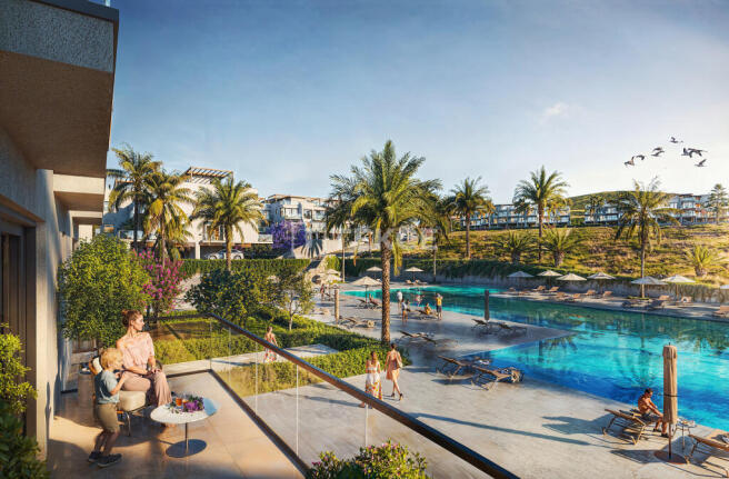 Apartments for sale in North Cyprus are located 250 m from the sea, 1 km from Küçükerenköy Beach, 7 km from Esentepe Public Beach, 15 km from Korineum Golf Club, 18 km from Alagadi Turtle Beach, 25 km from Girne city center, 33 km from Dr. Suat Günsel Hospital and the University of Girne, 50 km from Ercan Airport, and 75 km from Larnaca Airport.