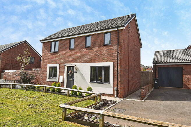 A stylish modern detached family home occupying a delightful position set back from the road with pleasant outlook over neighbouring green. Presented in superb decorative order throughout. Three bedrooms. Ensuite shower room to master bedroom. Family bathroom. Reception hall. Light and spacious sitting room. Modern kitchen/dining room. Utility room. Cloakroom. Landscaped rear garden enjoying south westerly aspect. Private driveway and garage. Popular residential location providing good access to local amenities, major link roads and Exeter city centre. A great family home. Viewing highly recommended.