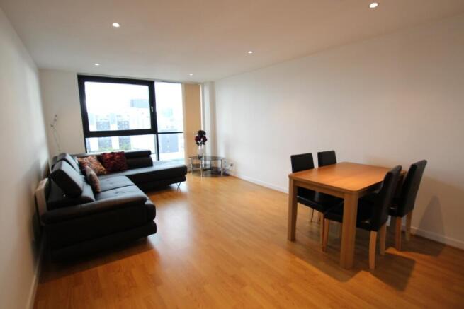 The property comprises of a spacious lounge with dining area and large floor to ceiling window, flooding the room with natural light and offering spectacular views. Two large double bedrooms both with spacious fitted wardrobes. The master bedroom also benefits from a fully tiled en-suite shower room with chrome power shower. The kitchen is well designed and laid out, contemporary in style, with stainless steel splash-back, hob and oven. The property further benefits from elevator access, double glazing, tiled floors in kitchen and bathroom and high quality wooden flooring in hallway and lounge. There is a large communal resident's patio and secure underground parking. Excellent views of the Clyde and a central yet quiet location within walking distance of the City Centre and the West End.