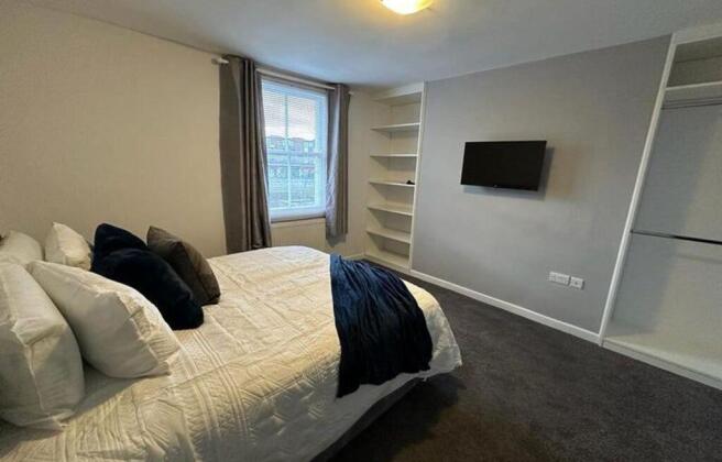 Fully furnished: double bed, desk, chair, fitted wardrobe