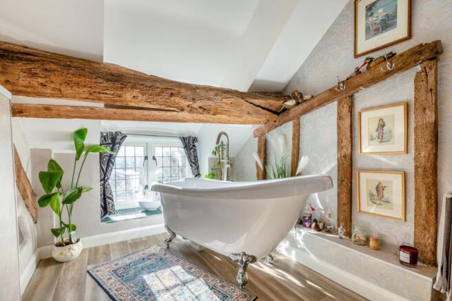 The first floor landing enjoys views to the front and exposed beams, providing access to the Principal Bedroom, three further double bedrooms and a luxurious bathroom.