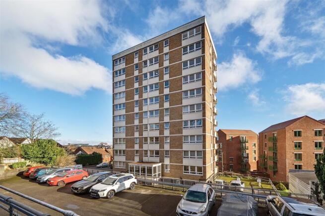 Located on the third floor, the apartment benefits from lift access. A hallway with built-in storage leads to every room, creating a practical and welcoming layout. The reception room enjoys a double aspect with large windows that frame far-reaching views across the town, while the adjoining kitchen sits just off the living area and opens directly onto the private balcony. The kitchen is fitted with beech-effect units, laminate work surfaces, a stainless-steel sink, an integrated electric oven, a gas hob with cooker hood above, and space for further appliances.