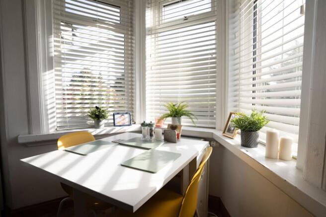 Spacious living room with bay window