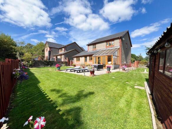 Cysgod-Y-Foel is approached via a private, gated driveway, framed by a traditional stone wall crafted from the original cottages that once stood on the site. The paved frontage offers ample off-road parking, in addition to a single garage providing further storage or sheltered parking. To the rear, the south-facing garden is a true highlight of this property. Designed to make the most of the open views and sunshine throughout the day, it features both a neatly maintained lawn and a patio area, ideal for outdoor dining and entertaining. Mature trees from the neighbouring parkland ensure privacy, while an outbuilding with power adds practical space for hobbies or storage. Side access from both sides of the house ensures ease of use.