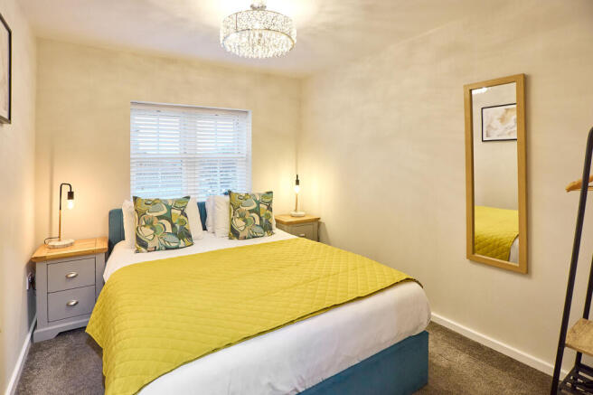 Step inside to find a warm and inviting living area, filled with natural light and cosy seating — the perfect spot to unwind after a day exploring the beach, pier, or nearby countryside. The apartment features a serene king-size bedroom and a bright twin room, both designed for a great night’s sleep with soft furnishings and calming décor.