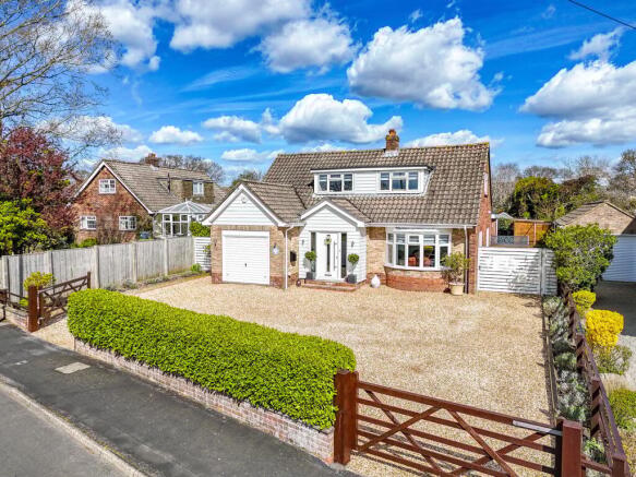 Twin five bar gates open in to a gravelled carriage drive providing ample parking for numerous cars. The property has an integrated garage ideal for storage of a classic car, bikes and kayaks. Access is provided to both sides leading to the landscaped lawned garden with a large patio, raised beds, garden shed and easily maintained coastal privet borders. There is a lockable gate with access ideal for boat or caravan storage.